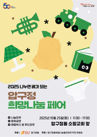 꿈이 모이는 도시, 미래를 그리는 강남구(구청장 조성명) 압구정동이 오는 25일 소망교회 제1주차장(압구정로36길 55)에서 ‘희망나눔 플리마켓’을 진행한다.